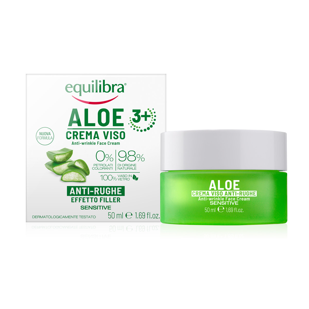 Η Aloe Anti-Wrinkle Face Cream με Filler Effect της Equilibra ® είναι μια κρέμα με ελαφριά υφή που απορροφάται γρήγορα χωρίς να αφήνει ίχνος λιπαρότητας. Ιδιαίτερα κατάλληλη για πιο ώριμο δέρμα, αντιπροσωπεύει μια ειδική θεραπεία για την καταπολέμηση των ρυτίδων και των σημαδιών γήρανσης χάρη στη δράση της Aloe Vera και των φυσικών ενεργών συστατικών που υπάρχουν στη φόρμουλα.
