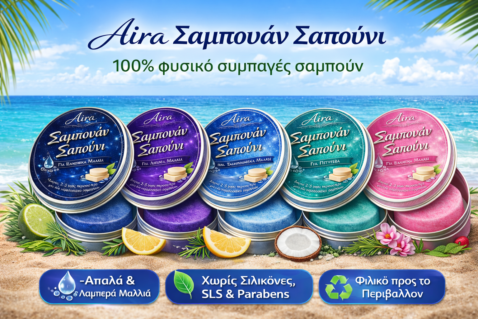 Ανακαλύψτε το σαμπουάν σαπούνι Aira για κανονικά μαλλιά, ένα προϊόν που συνδυάζει φυσικά συστατικά υψηλής ποιότητας, βιωσιμότητα και πρακτικότητα. Ιδανικό για καθημερινή χρήση, προσφέρει βαθύ καθαρισμό χωρίς χημικά και αφήνει τα μαλλιά απαλά, ενυδατωμένα και γεμάτα ζωντάνια.